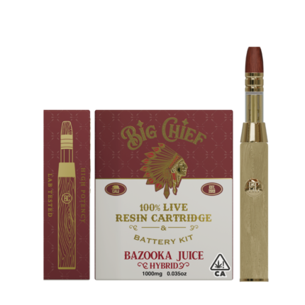 Big Chief's Bazooka Juice is a hybrid strain disposable vape that offers a balanced and euphoric experience. This product delivers a unique flavor profile with sweet, tropical, and subtly spicy notes, reminiscent of classic bubblegum. Known for its relaxing effects, it's a great option for a mood boost, social occasions, or for helping to alleviate stress and tension.