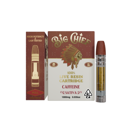 Big Chief's "Caffeine" is a sativa-dominant hybrid vape that lives up to its name, offering an invigorating and focused high. With a zesty, citrusy, and earthy flavor profile, this strain is perfect for boosting mood and energy levels. It's an ideal choice for daytime use, providing a clear-headed and motivating buzz that can help with productivity and creativity.