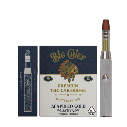 Big Chief's Acapulco Gold cartridge offers a legendary sativa experience, capturing the essence of the classic landrace strain from Mexico. Known for its potent, uplifting, and energizing effects, it provides a clear-headed and euphoric high. The flavor profile is a unique mix of earthy, burnt toffee, and spicy notes with hints of citrus.