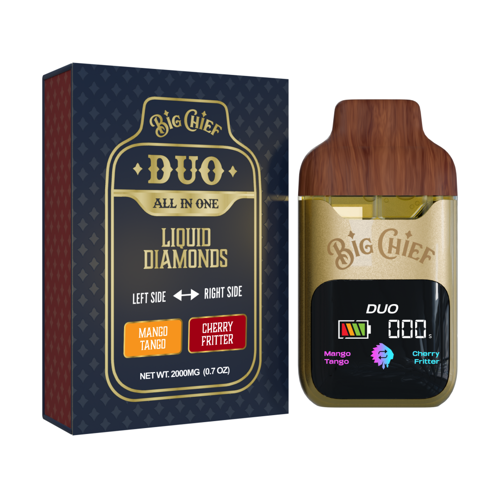 Big Chief’s Mango Tango | Cherry Fritter all-in-one disposable vape combines two potent hybrid strains for a sweet and balanced experience. The initial flavor features the bright, tropical notes of Mango Tango, a strain celebrated for its uplifting and euphoric effects. This is followed by the rich, fruity, and slightly doughy undertones of Cherry Fritter, which provides a deeply relaxing and calming body high. This unique blend offers a versatile high that is both cerebrally stimulating and physically soothing, making it a great choice for any time of day.